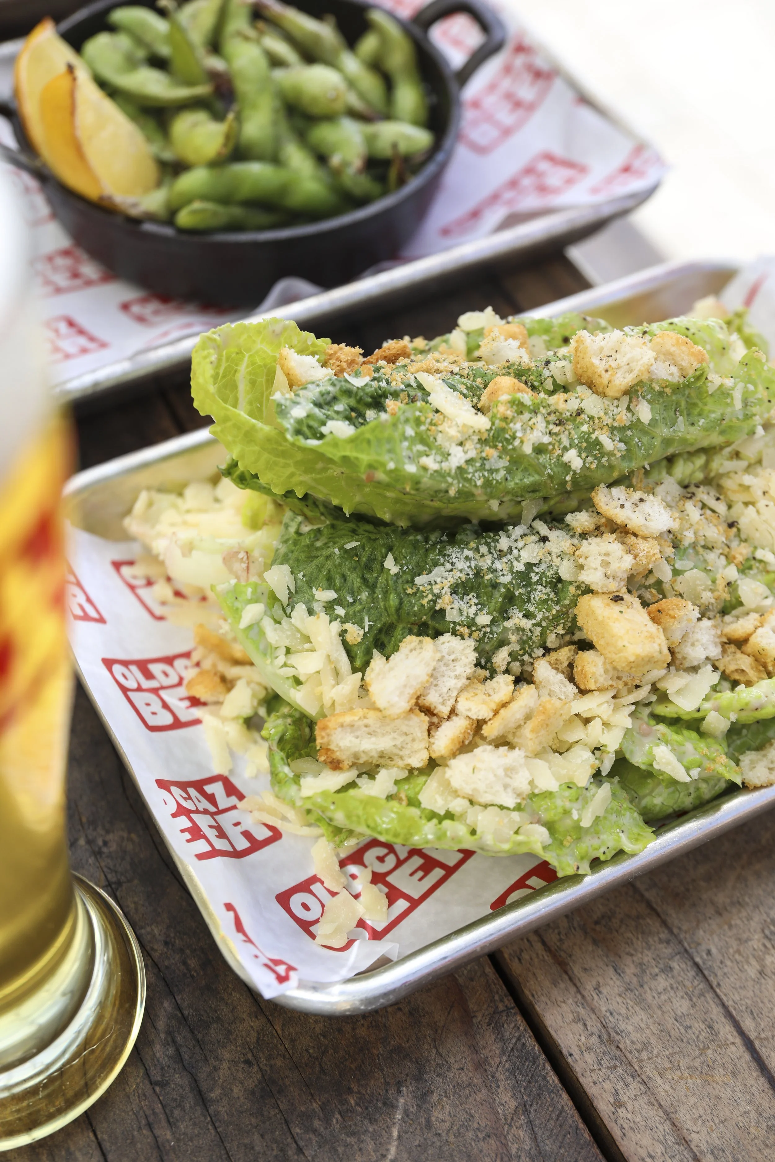 Romaine lettuce, parmesan cheese, croutons & fresh cracked pepper w/ caesar dressing and a lemon wedge.